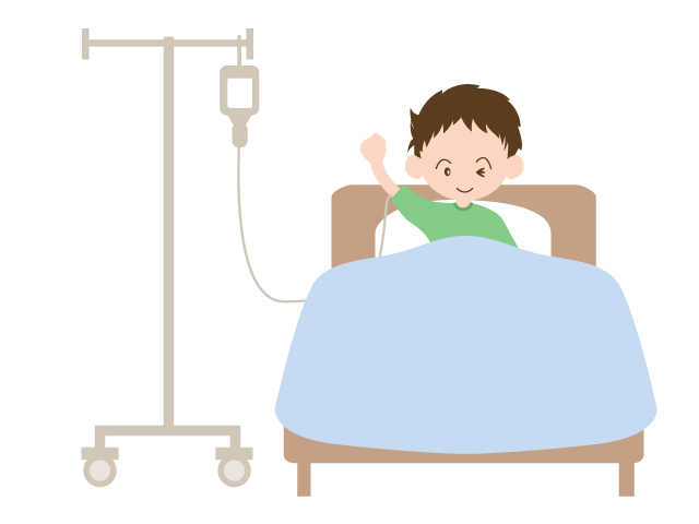 入院 | 男の子 | ベッド | 点滴 - 介護/老人ホーム/医療/薬/治療/人物/クリップアート/無料素材
